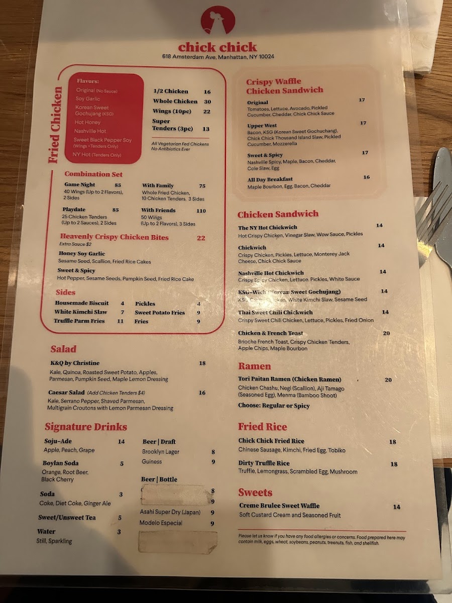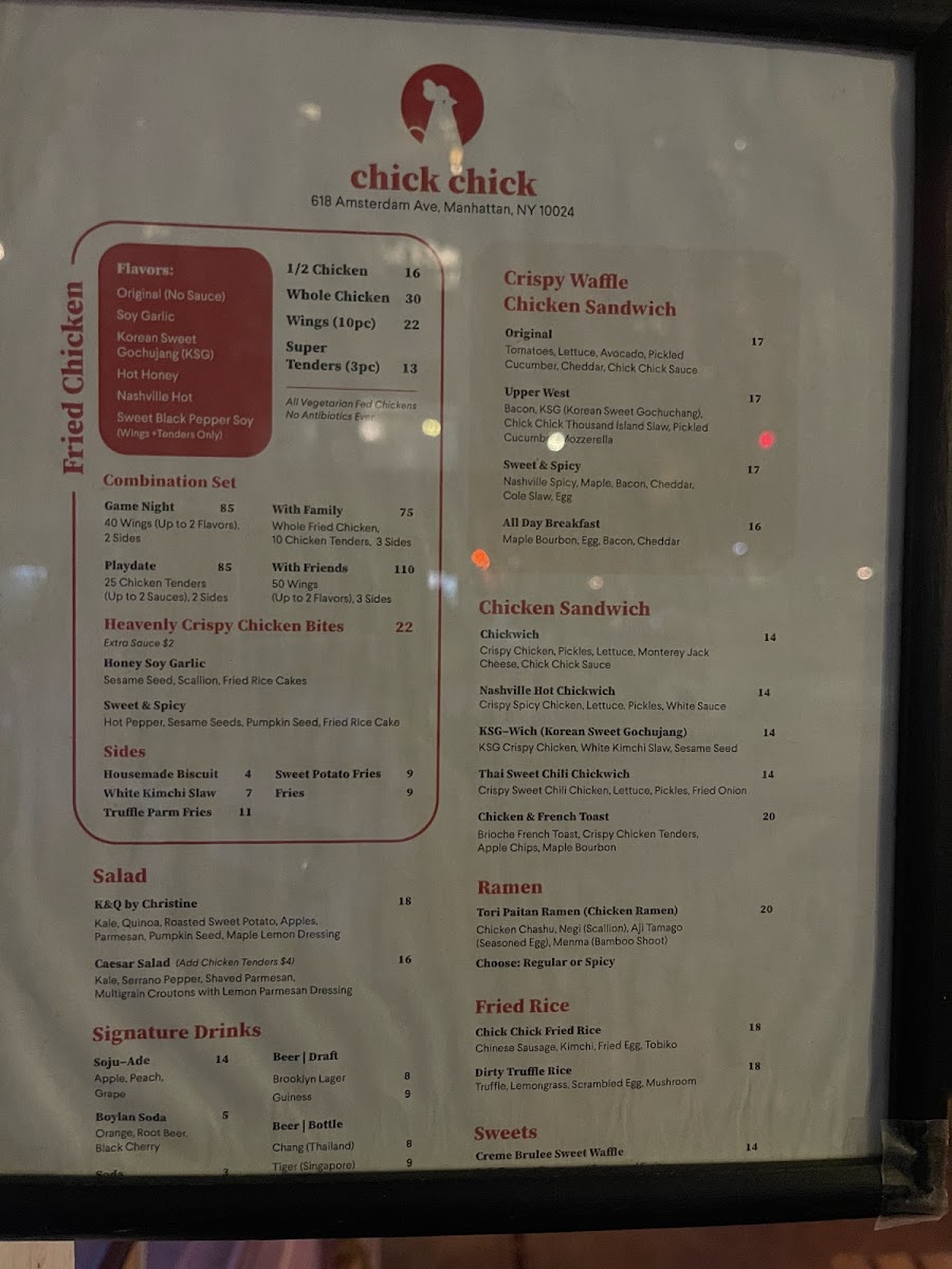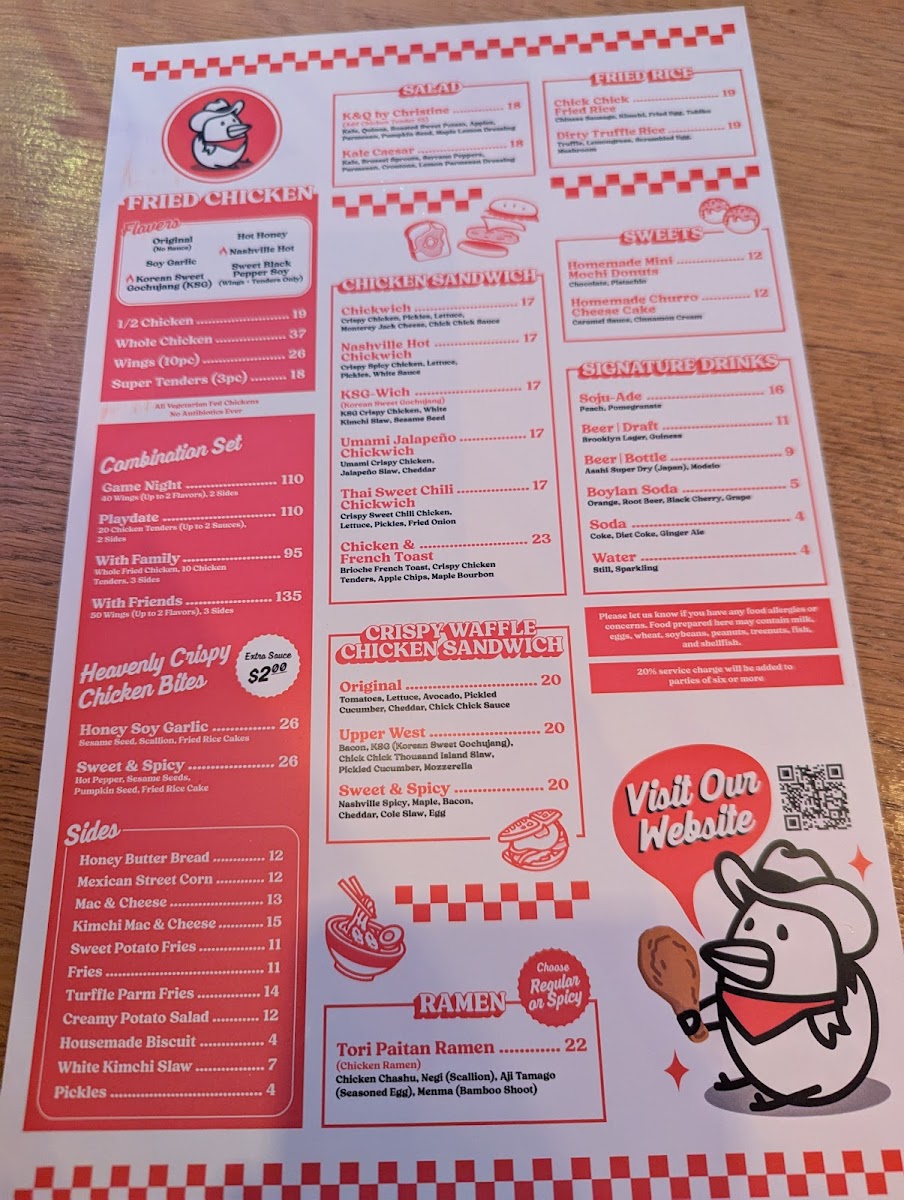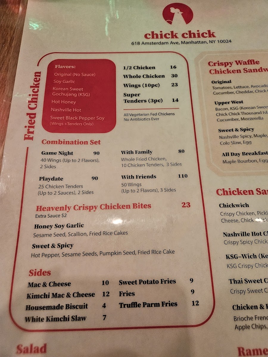 Whole fried chicken, 10 chicken tenders with 3 sides. Peanuts in KSG sauce.
